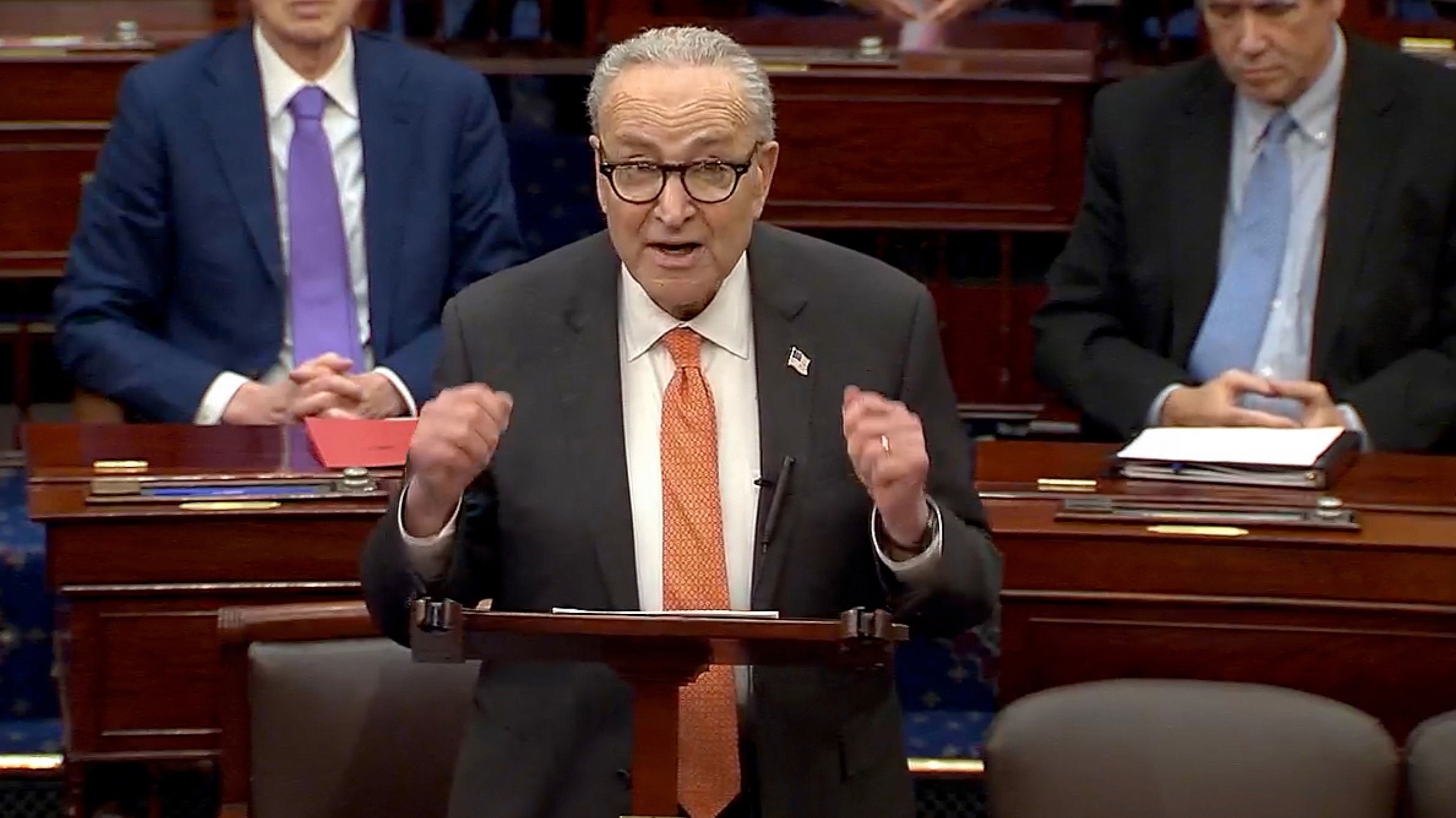 Us Senate Minority Leader Chuck Schumer talks on the flooring of the Us senate in Washington, Nov. 7, 2025.