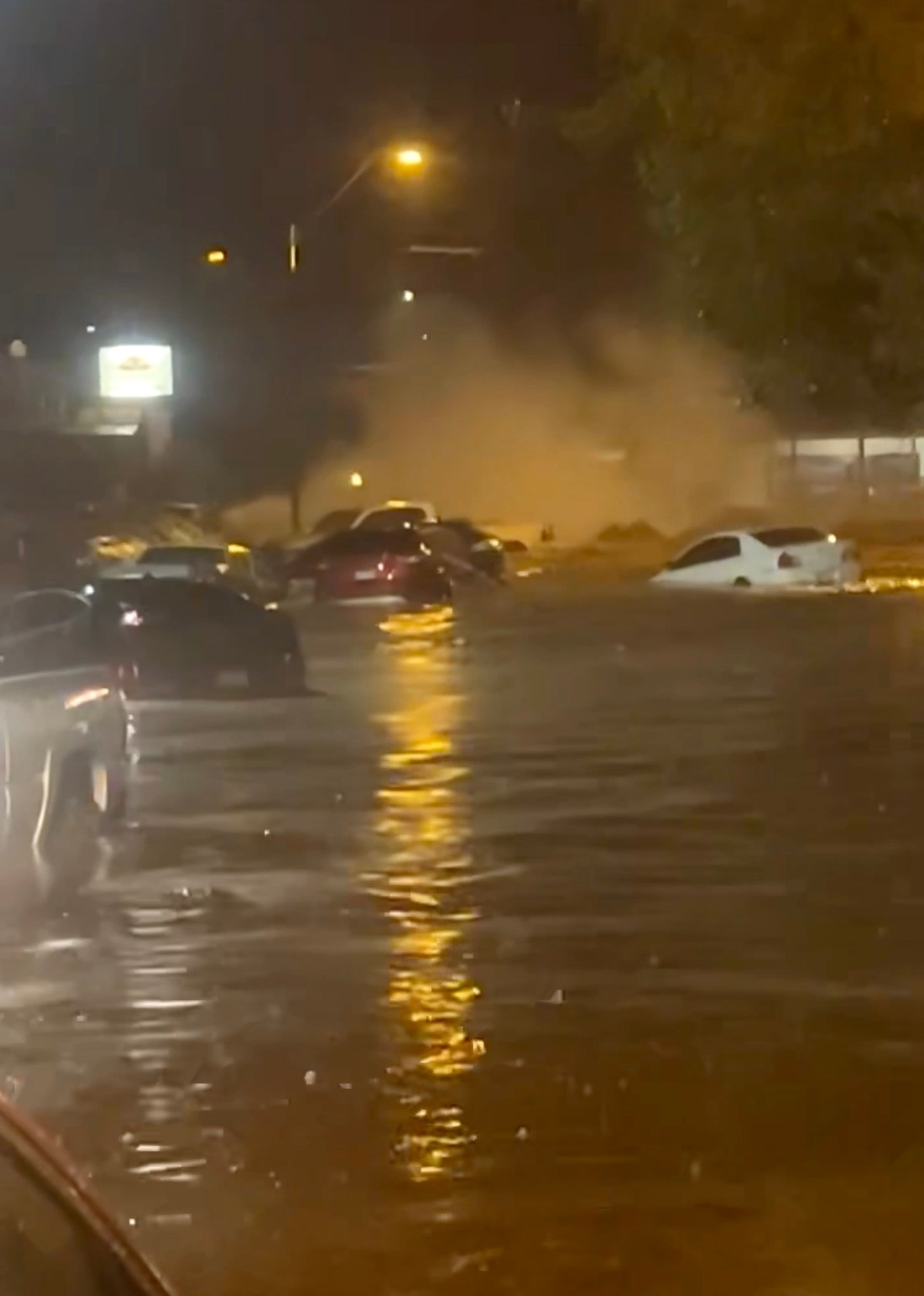 Autos are immersed in flooding waters in World, Arizona, on Sept. 26, 2025.