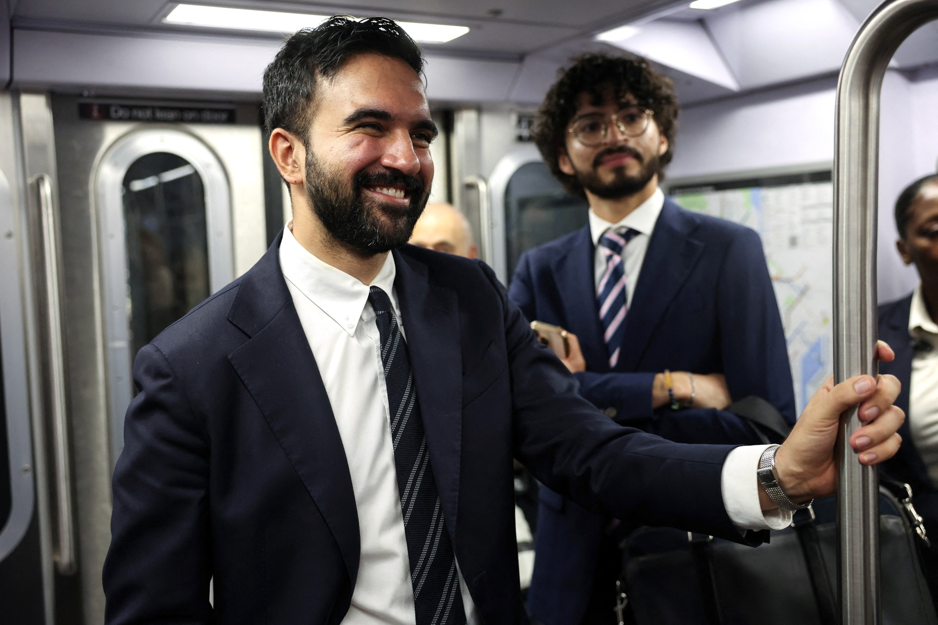 New york city City mayoral prospect Zohran Mamdani grins while riding a train in New york city, Sept. 29, 2025.