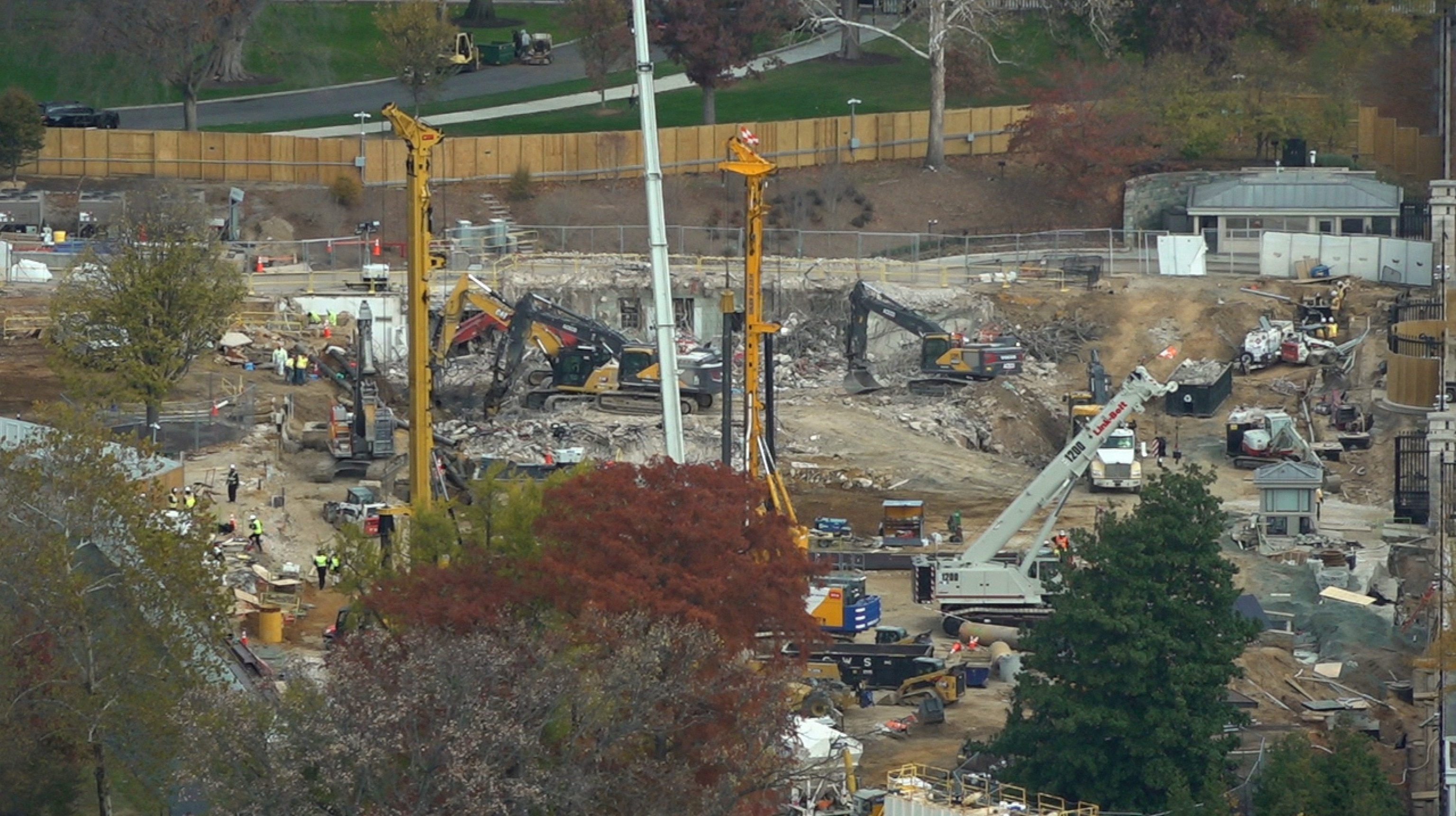The building and construction for the ballroom on the White Residence’s East Wing as seen from the top of the Washington Monolith, Nov. 17, 2025.
