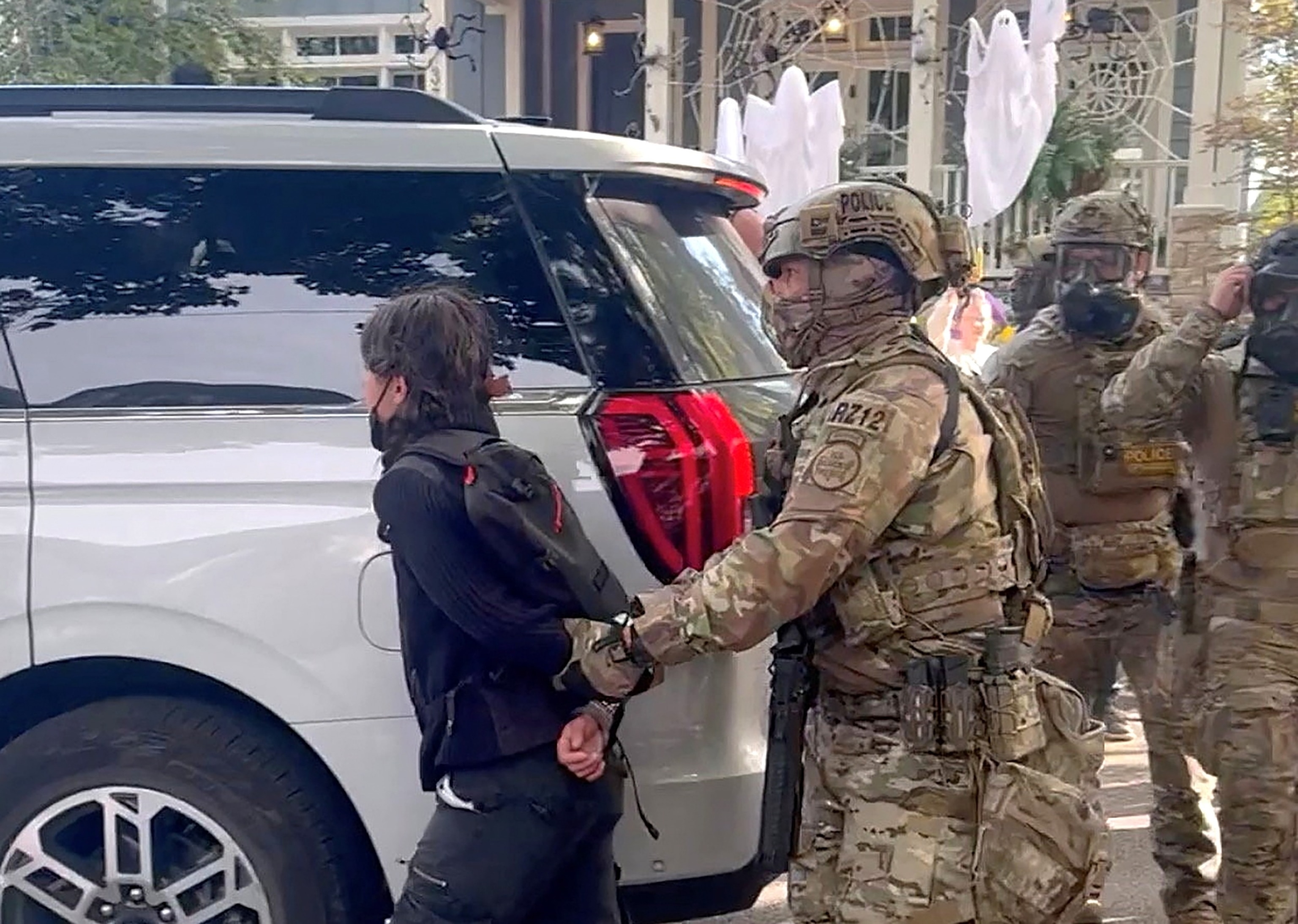 Video clip video footage that was confirmed by ABC Information revealed representatives releasing tear gas and taking on and apprehending a number of individuals, consisting of united state people, outdoors homes dressed up in Halloween decors.