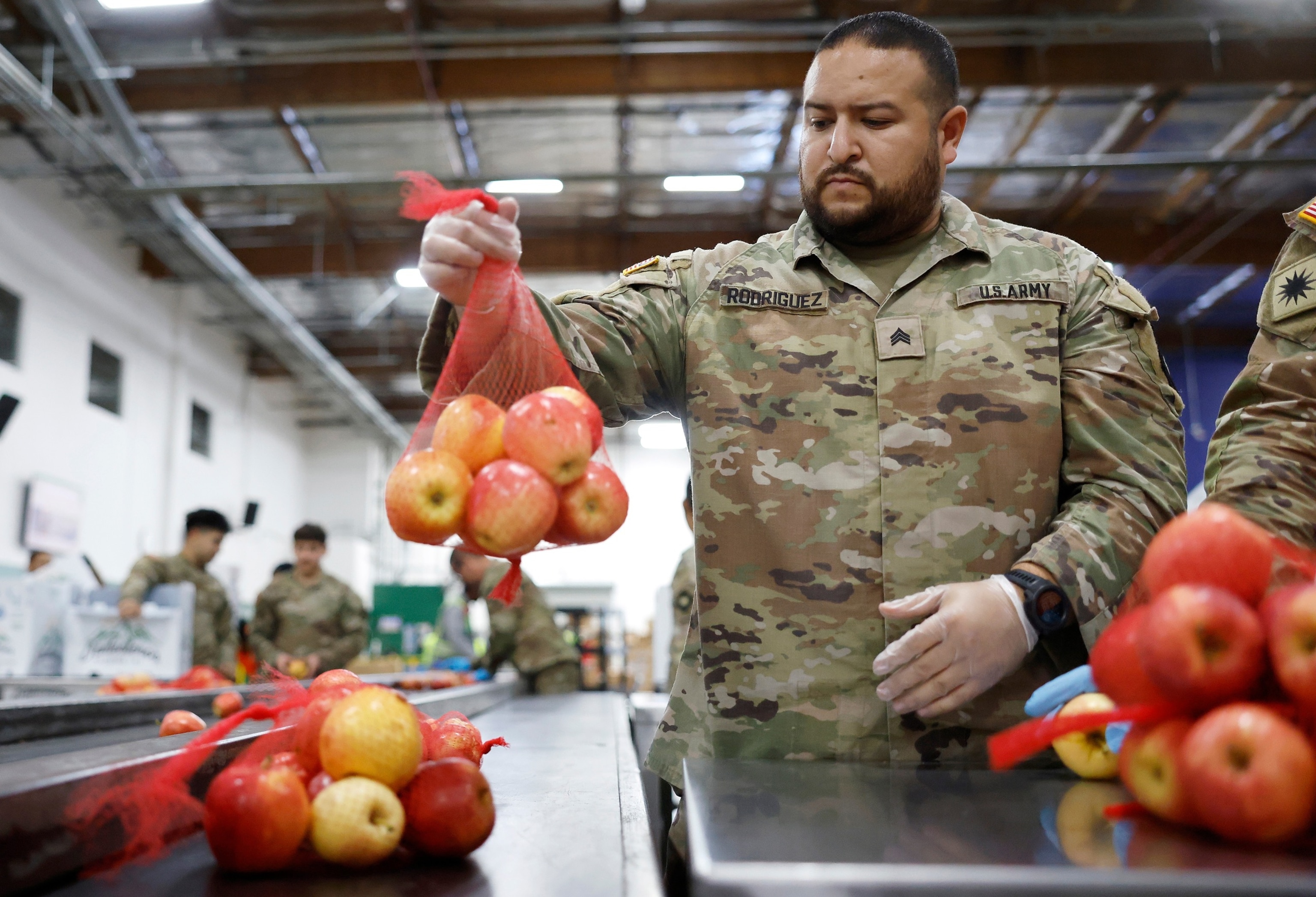 The golden state National Guard kind generate at the Los Angeles Food Financial Institution Oct. 29, 2025, in Los Angeles.