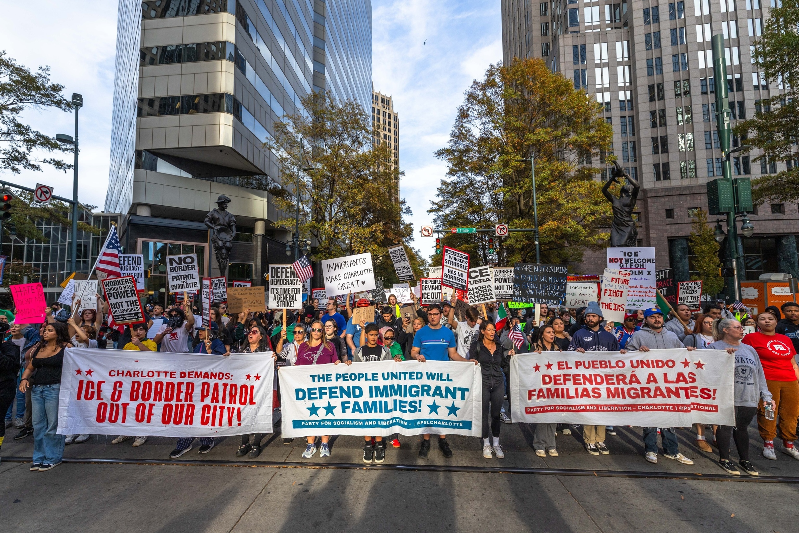 Demonstrators march via Charlotte, North Carolina, November 15, 2025, to oppose the Trump management’s implementation of Boundary Patrol representatives to the city.