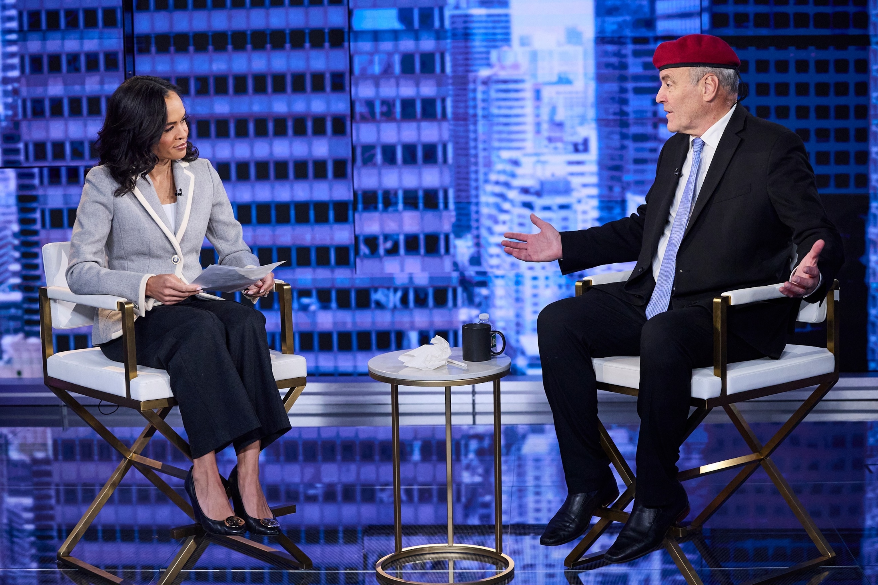 ABC Information’ Linsey Davis meetings New York City Mayoral Prospect Curtis Sliwa, Oct. 31, 2025.