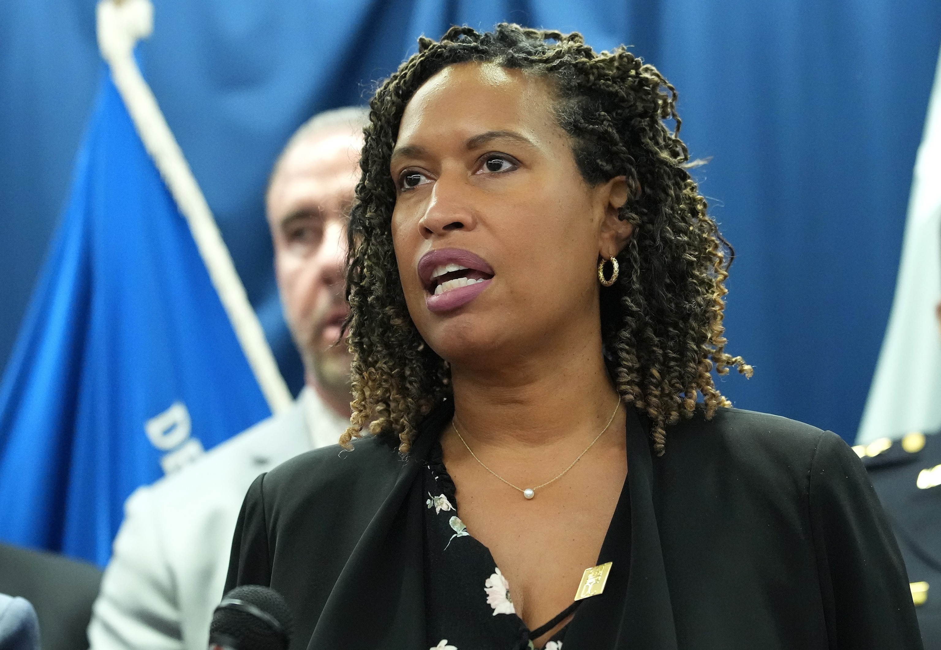 Washington, D.C. Mayor Muriel Bowser talks at an interview introducing apprehensions in the murder of Legislative trainee Eric Tarpinian-Jachym, at the united state Lawyer’s Workplace, Sept. 5, 2025, in Washington, D.C.