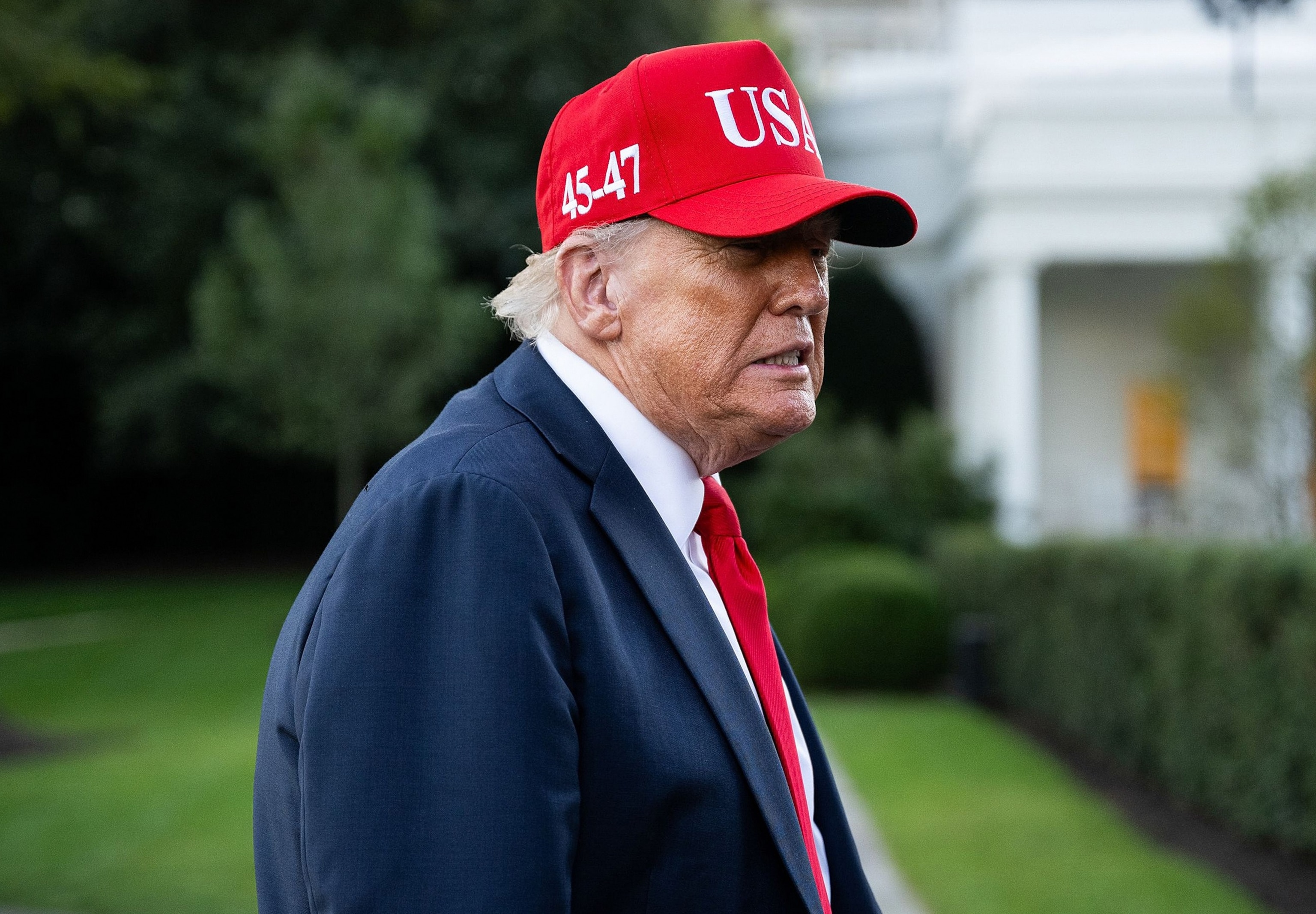 Head of state Donald Trump talks to participants of the media on the South Grass of the White Home after leaving Marine One in Washington, October 5, 2025.