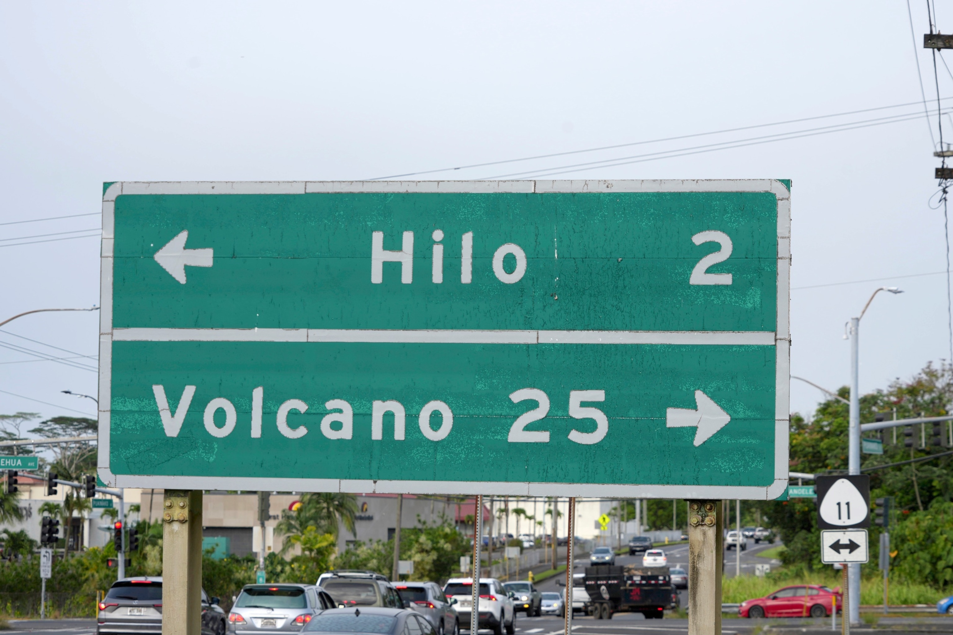 A Hilo and Volcano instructions indicator, July 15, 2025, in Hilo, Hawaii.