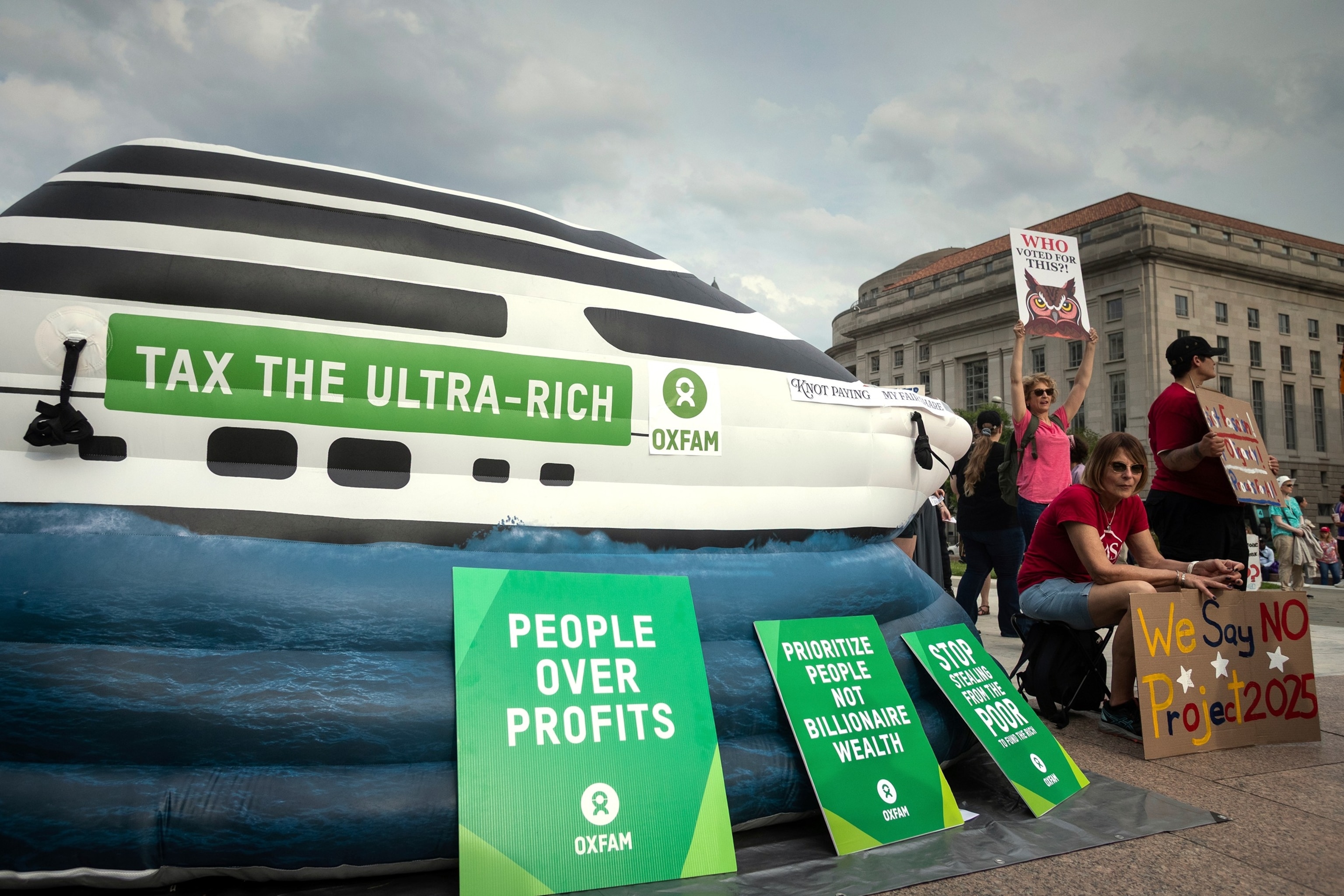 The DC phases of Autonomous Socialists of America and Celebration for Socialism and Freedom host a rally for International Employees Day in Liberty Plaza, in Washington, D.C., May 1, 2025.
