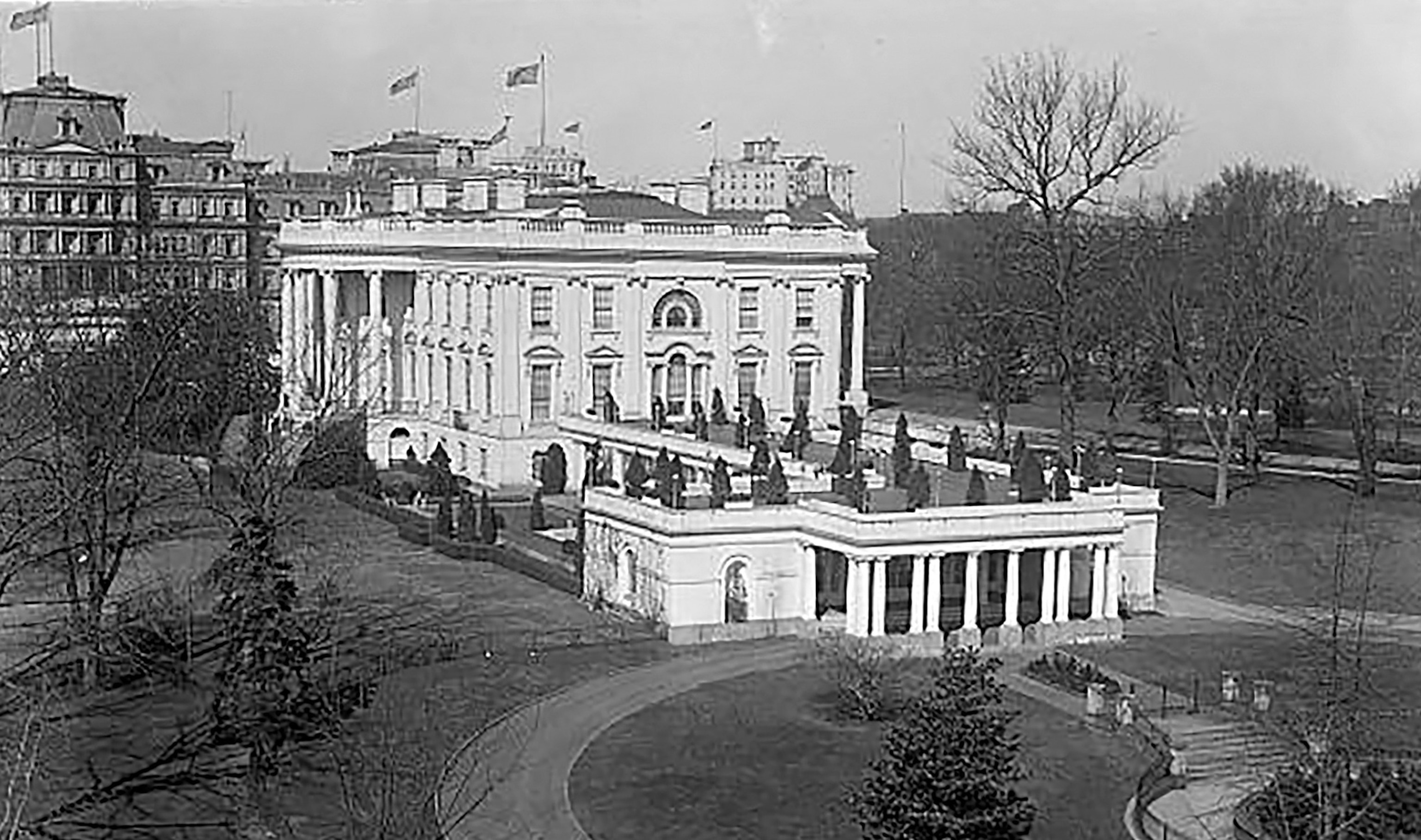 This photo thanks to the Collection of Congress, Prints & & Photographs Department, reveals a sight of the White Residence and the White Residence East Wing, circa 1916-1919, in Washington.