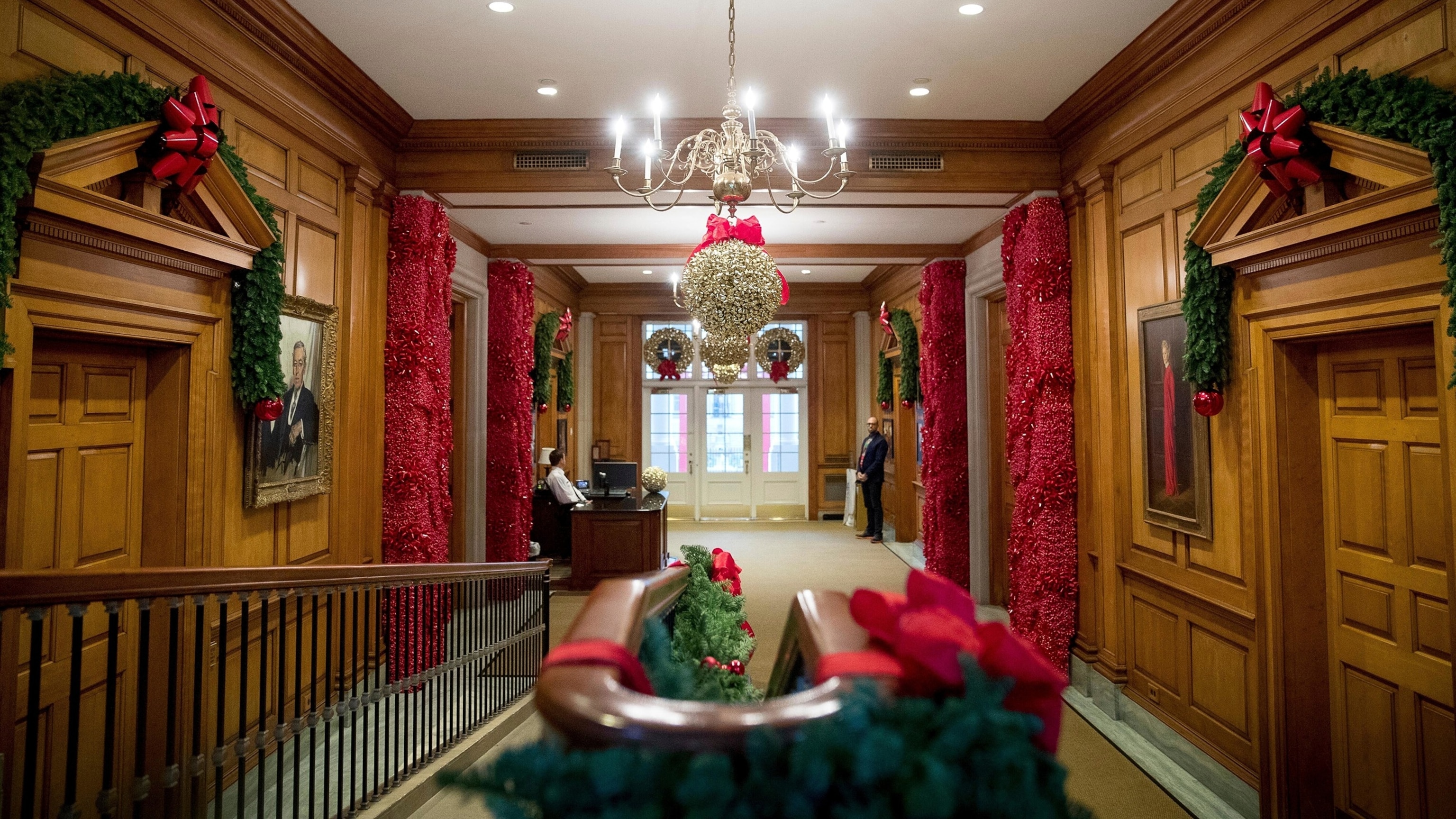 The East Wing corridor of the White Residence is enhanced for the holiday, Nov. 29, 2016, in Washington.