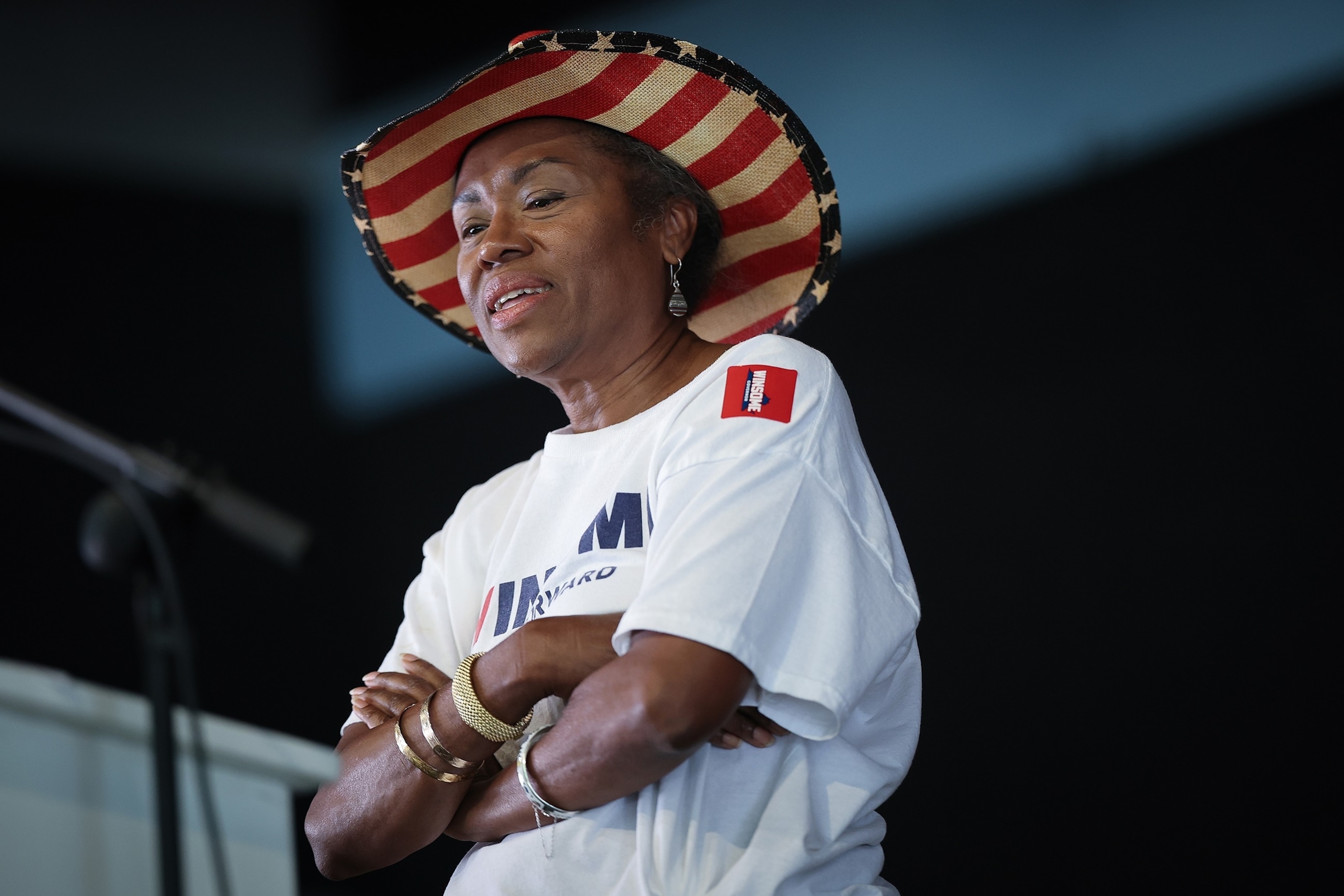 Virginia Republican politician gubernatorial prospect, Lt. Gov. Winsome Earle-Sears, goes to the 54th Yearly Buena View Labor Day Celebration on September 01, 2025 in Buena View, Virginia.