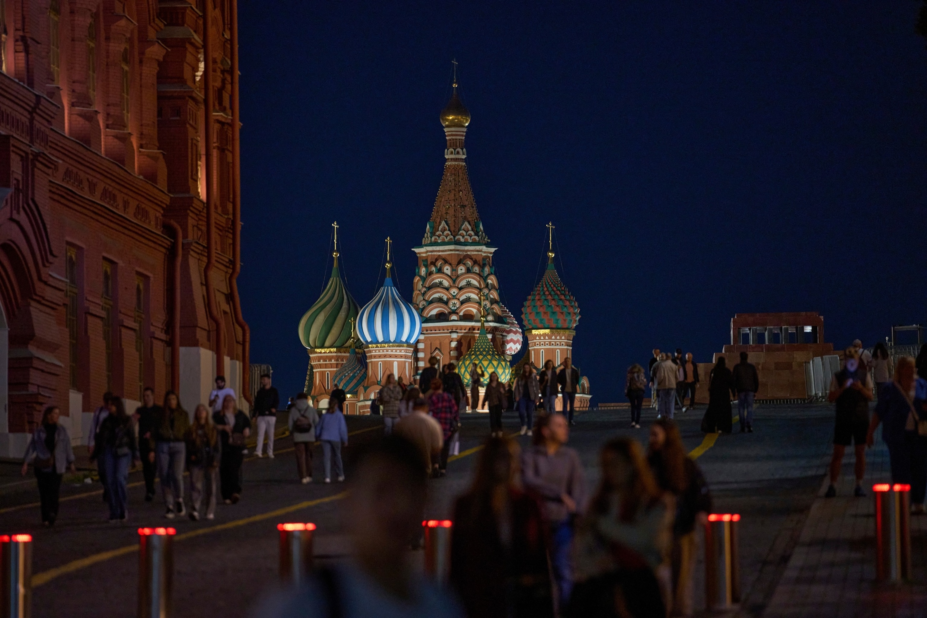 Individuals stroll in Red Square in Moscow, Russia, on Sept. 10, 2025.