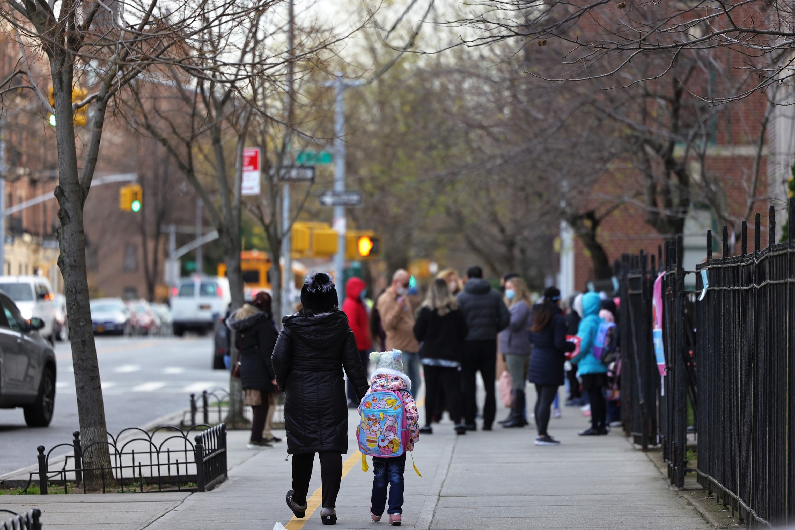 Moms and dads hand over their kids at P.S. 179 Kensington in New York City City.