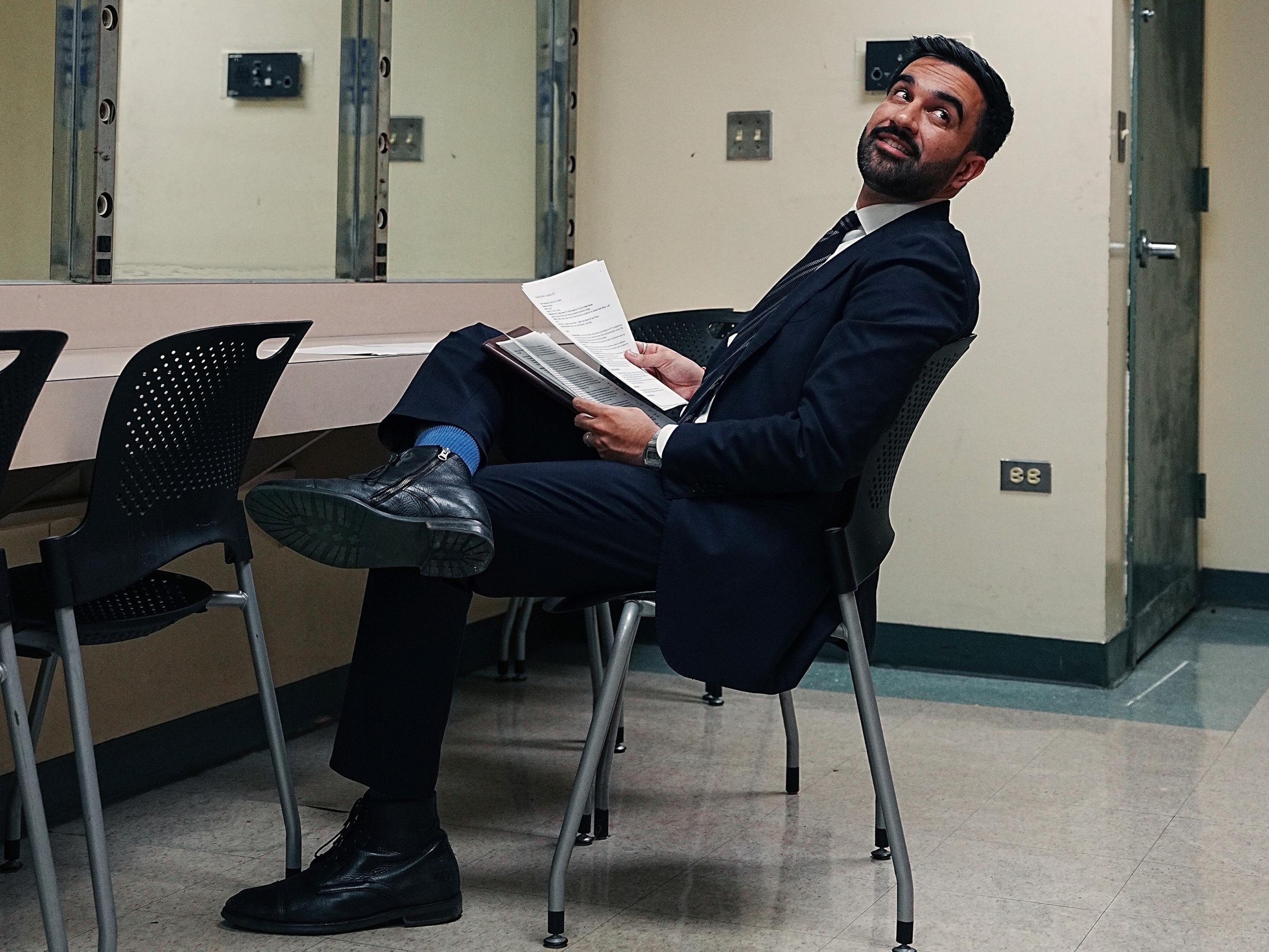 Autonomous prospect Assemblyman Zohran Mamdani prepares prior to taking part in a 2nd New york city City mayoral argument, October 22, 2025 in New York City City.